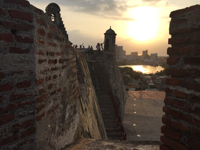 sunset at fort in Cartagena