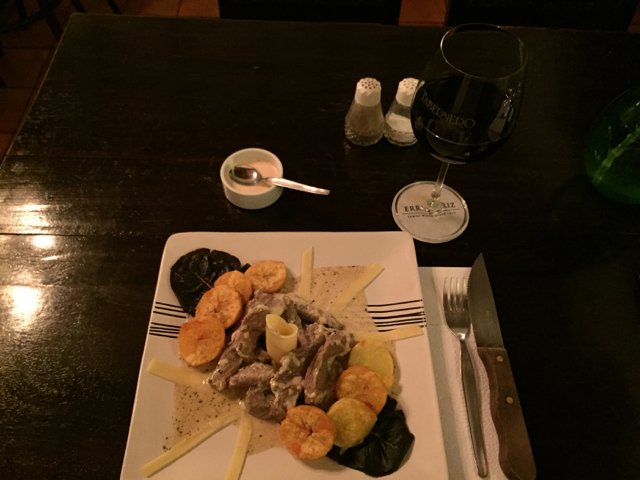 Um den Plaza des Armas herum sind wenige Geschäfte und auch kein reges Treiben. Auffällig ist, dass die Straßenblöcke, wie in den meisten Städten Südamerikas, immer auf eine Sache spezialisiert sind. So findet man auf einer länge von 200m über 50 (!) Optiker, im nächsten Quadranten dann über 30 Friseurläden. Nur die Suche nach einem schönen Restaurant erweist sich schwieriger als gedacht und so lande ich im El Cellar, in dem ich es mir gutgehen lasse.