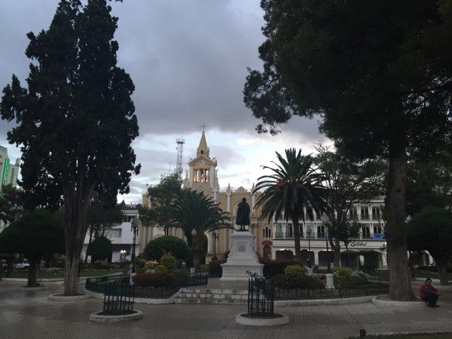 Es hat tropische 27°C. Kurz vor Puyo ziehe ich meine Regenkombi aus. Leider gibt es kein Café in Puyo, das einen netten Hauptplatz hat, ansonsten jedoch nicht viel bietet.