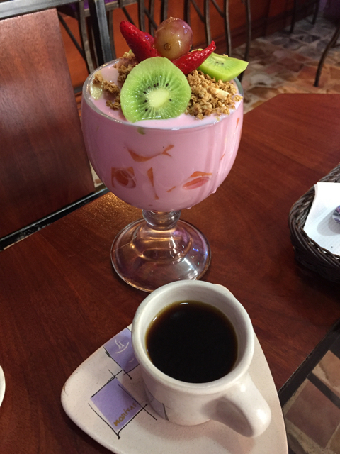 Nach einem gesunden Frühstück mit Obstsalat und Joghurt bin ich bereit für eine Stadtrundfahrt. Mit mehr als 600.000 Einwohnern ist Cuenca die drittgrößte Stadt Ecuadors und weite Teile der Altstadt sind Weltkulturerbe. Neben den 52 Kirchen gibt es zahlreiche Häuser im Kolonialstil zu bewundern.